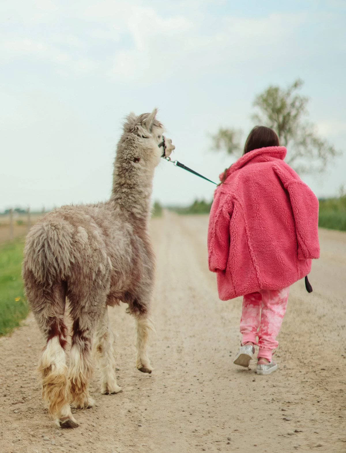 - Hot pink sherpa mid-length coat