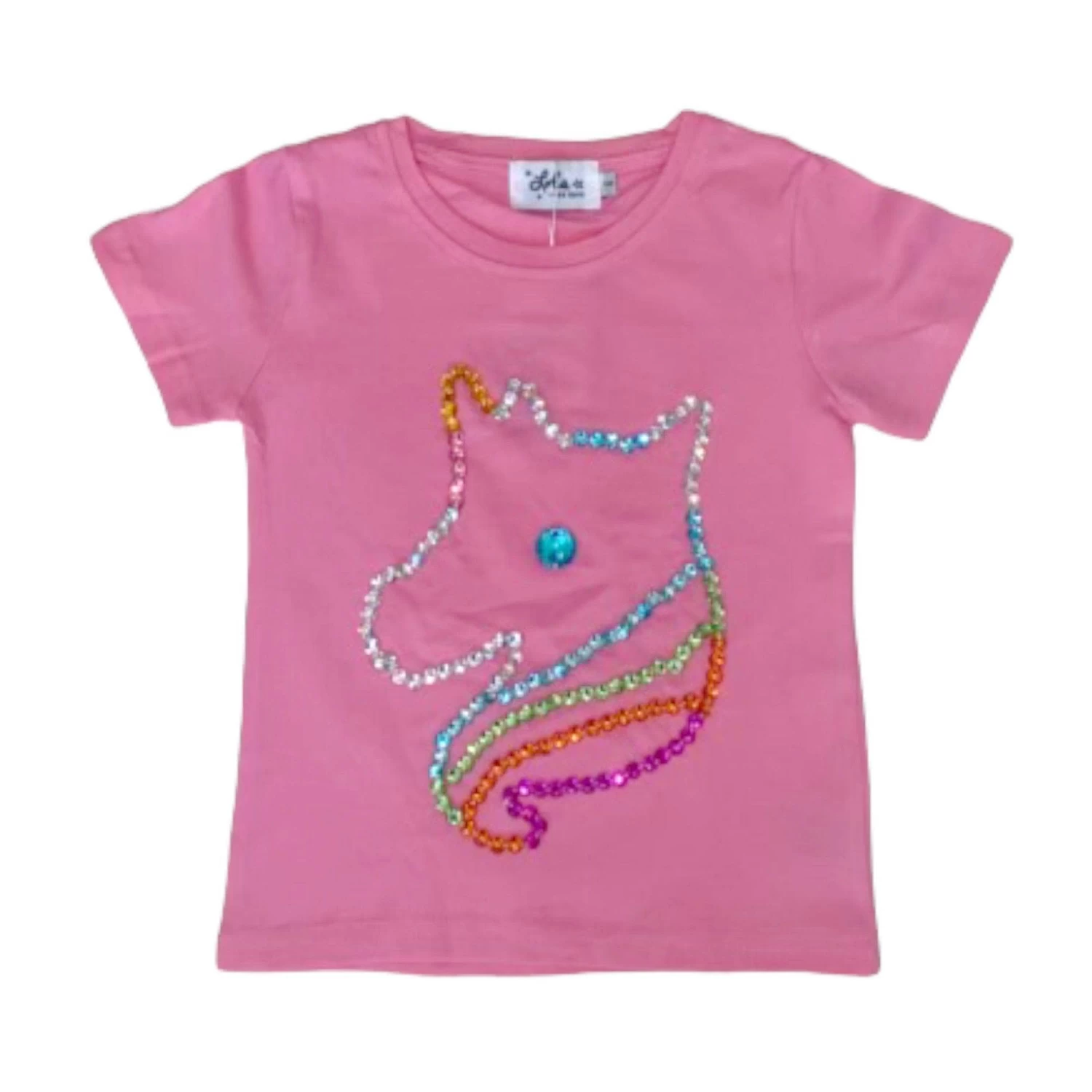- Pink gem outline of a cute unicorn tee