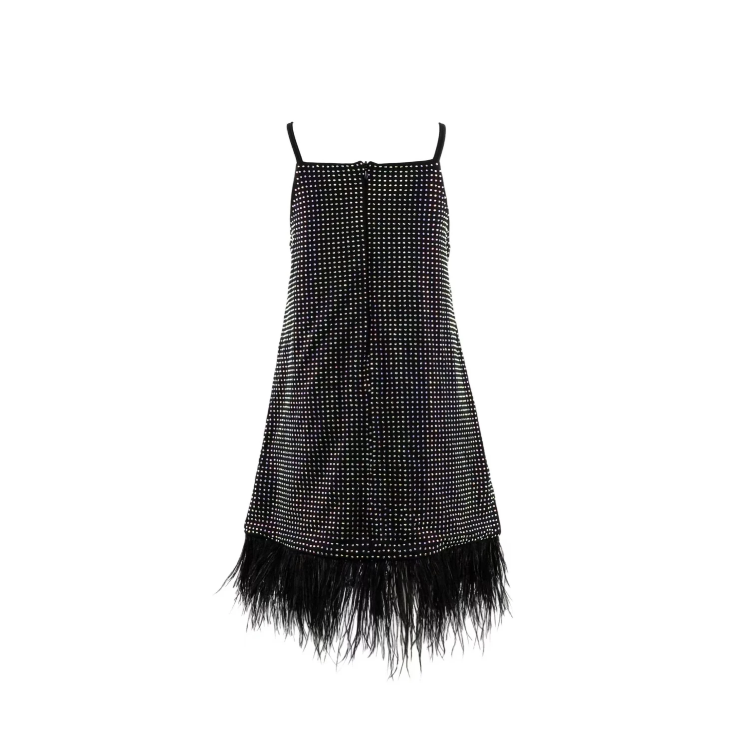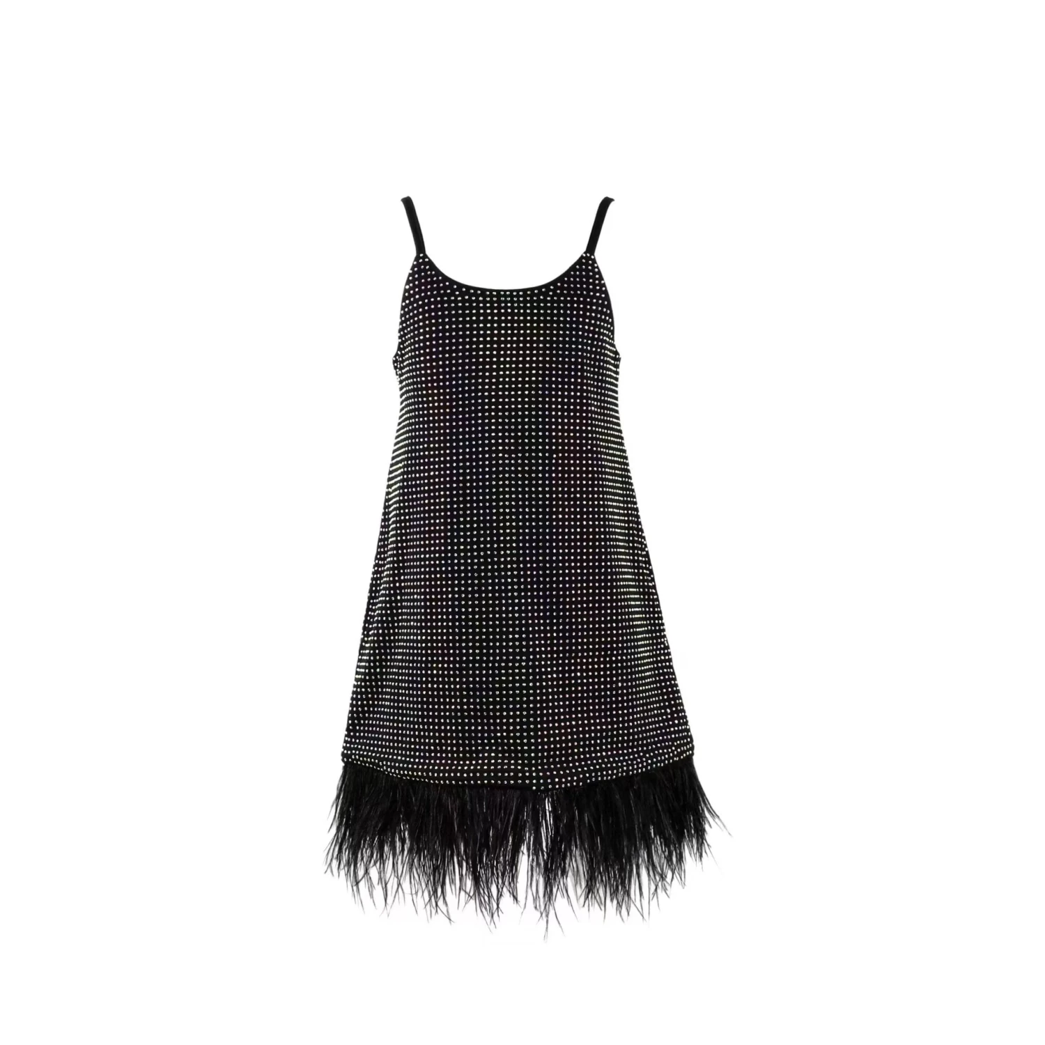 - Styled with feather trimsÂ