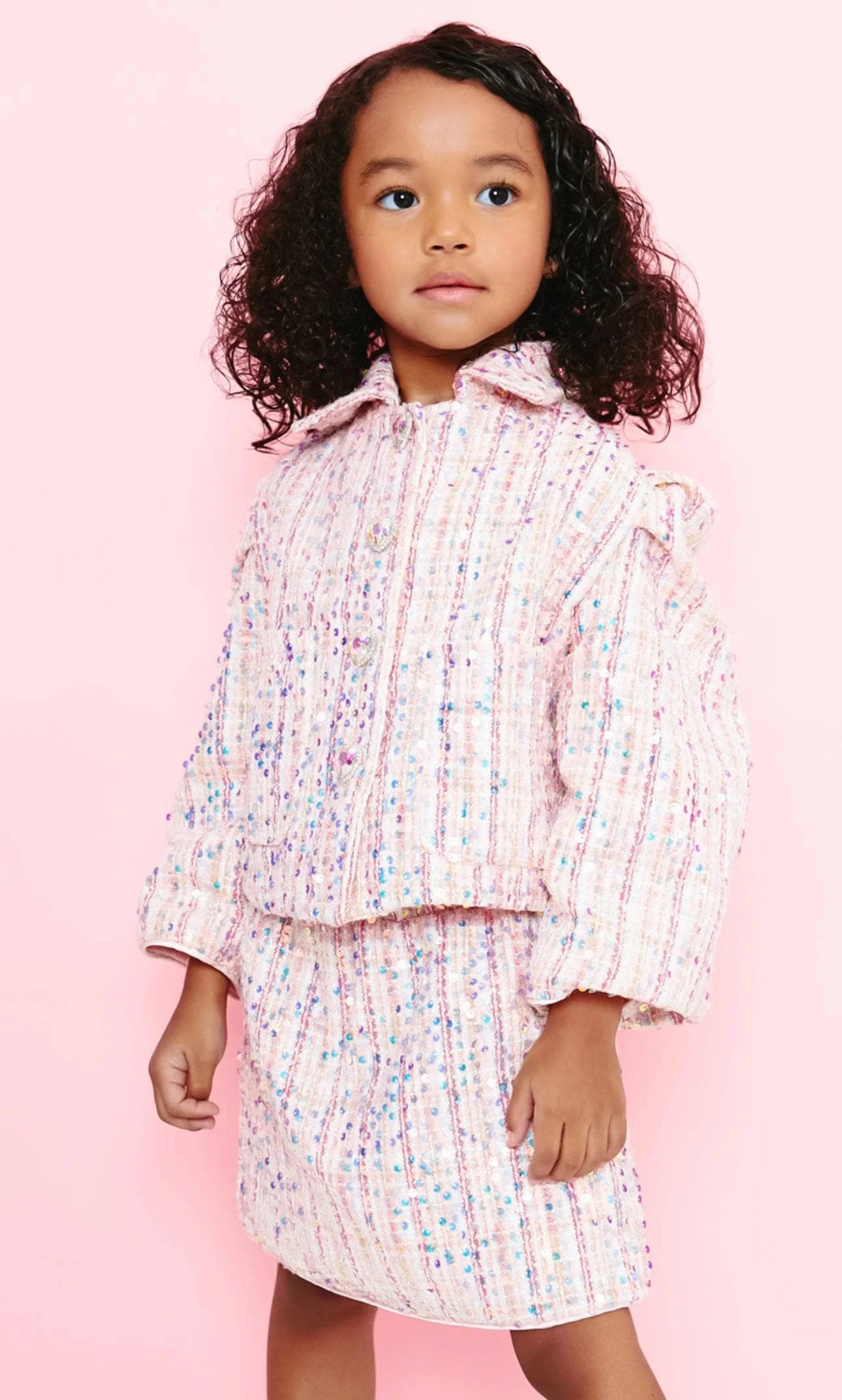 - Light pink tweed suit