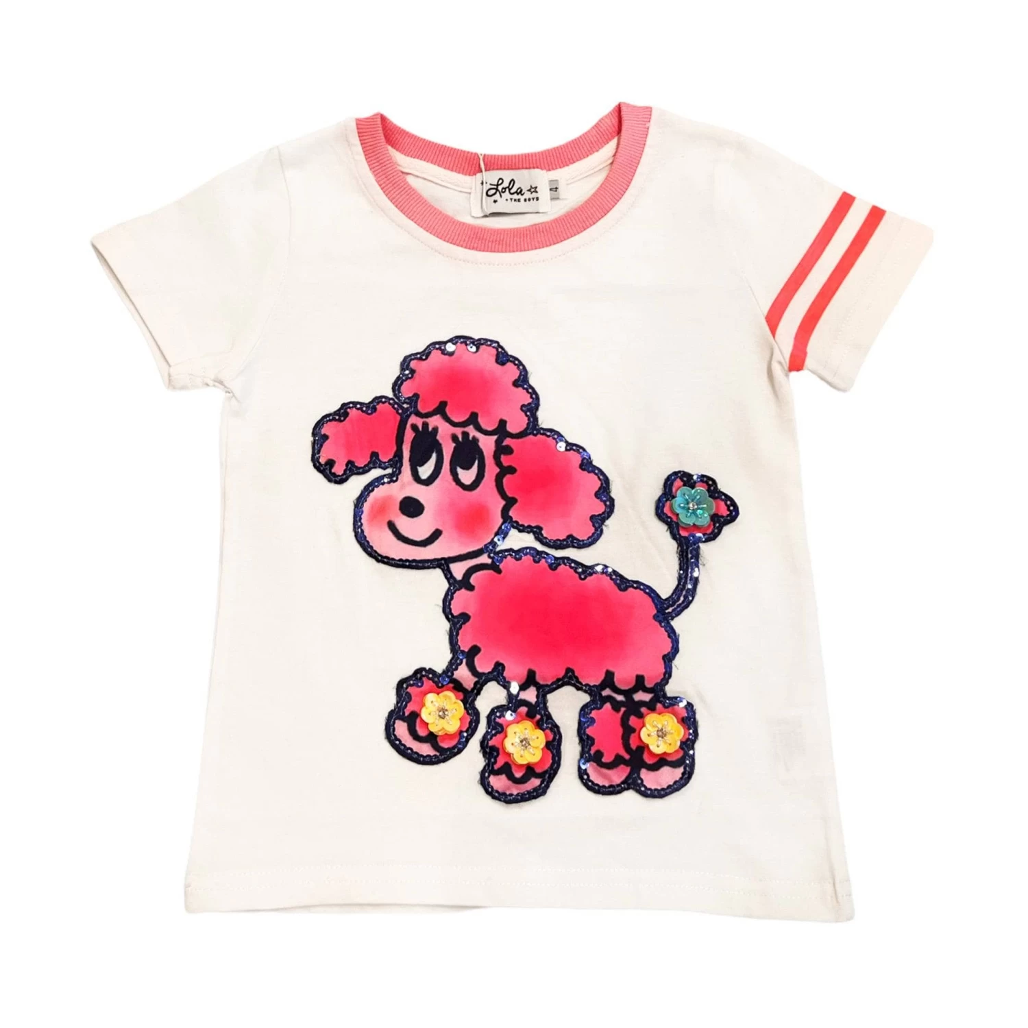 - White pink poodle tee