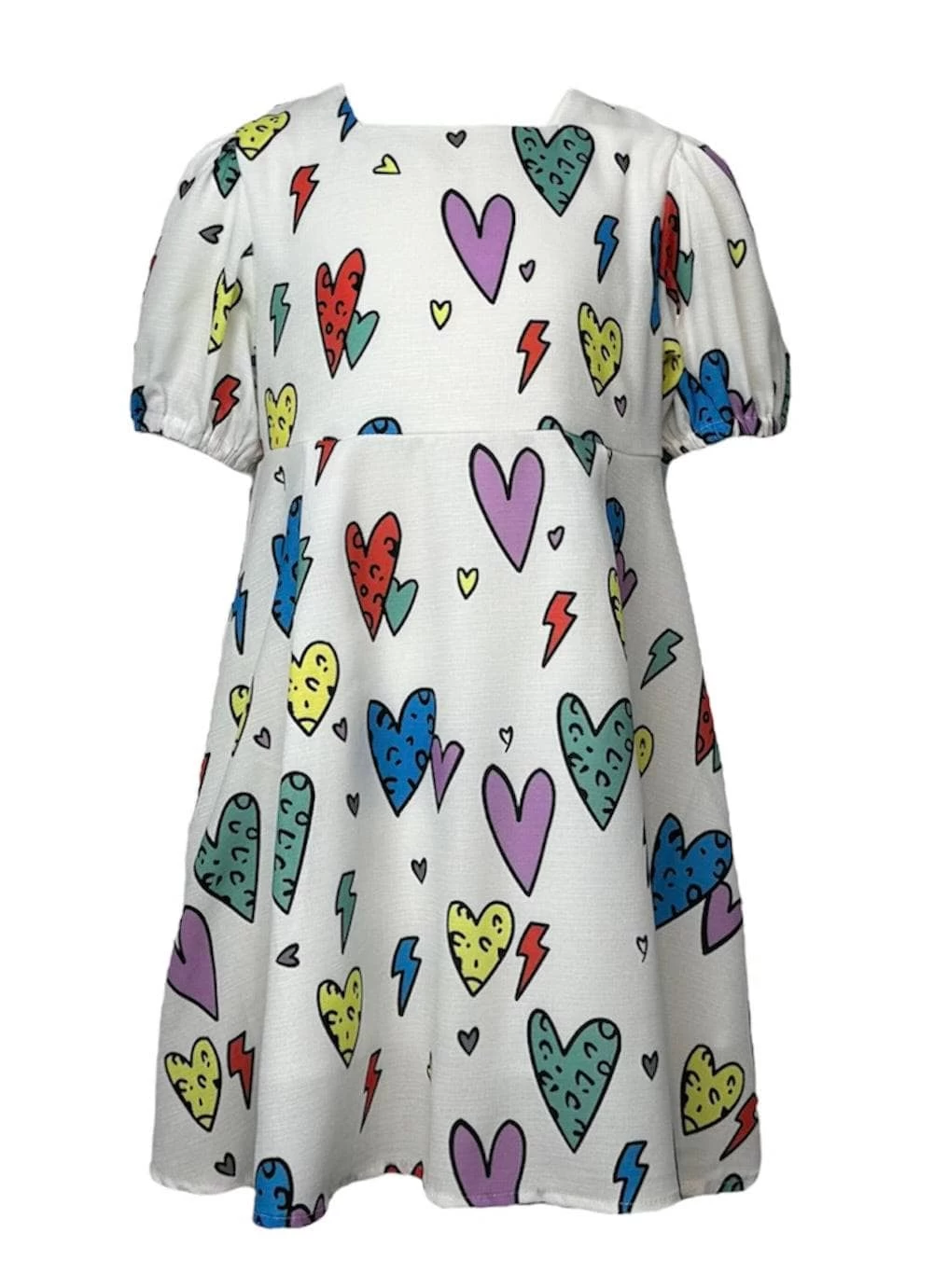 A dazzling addition to any young fashionista’s wardrobe! This dress features a rainbow cheetah print in vibrant shades. The comfortable and lightweight fabric ensures all-day wearability.