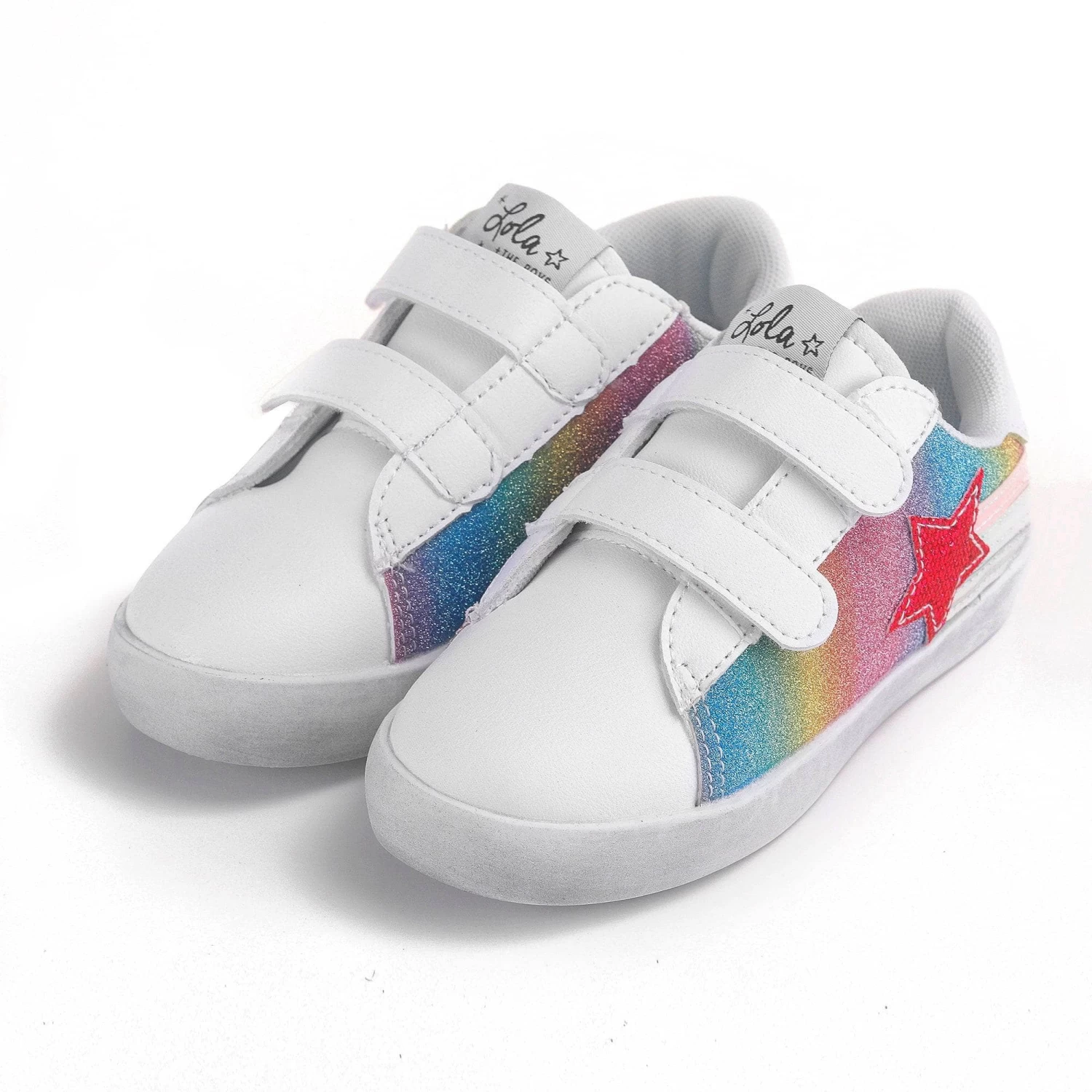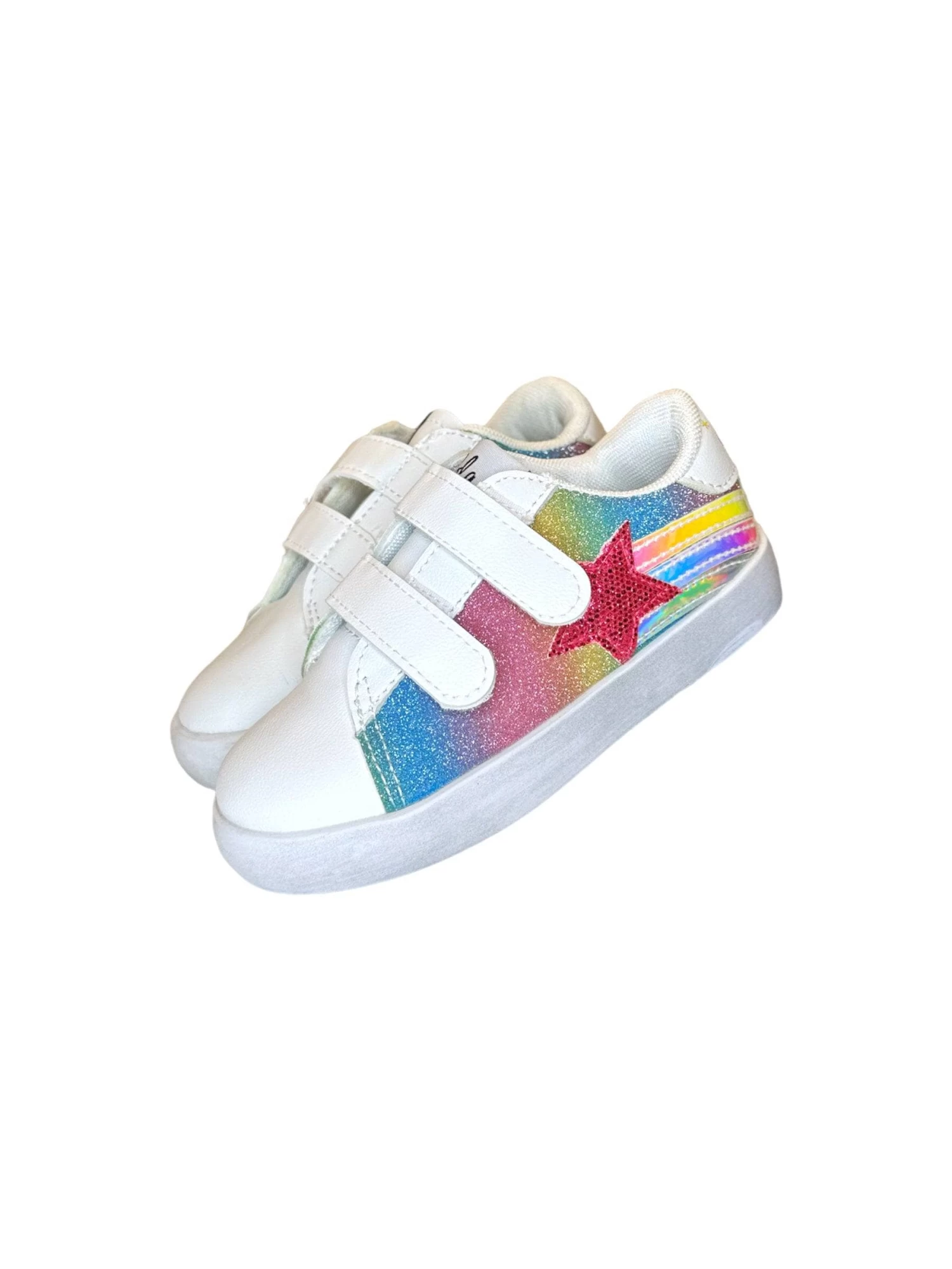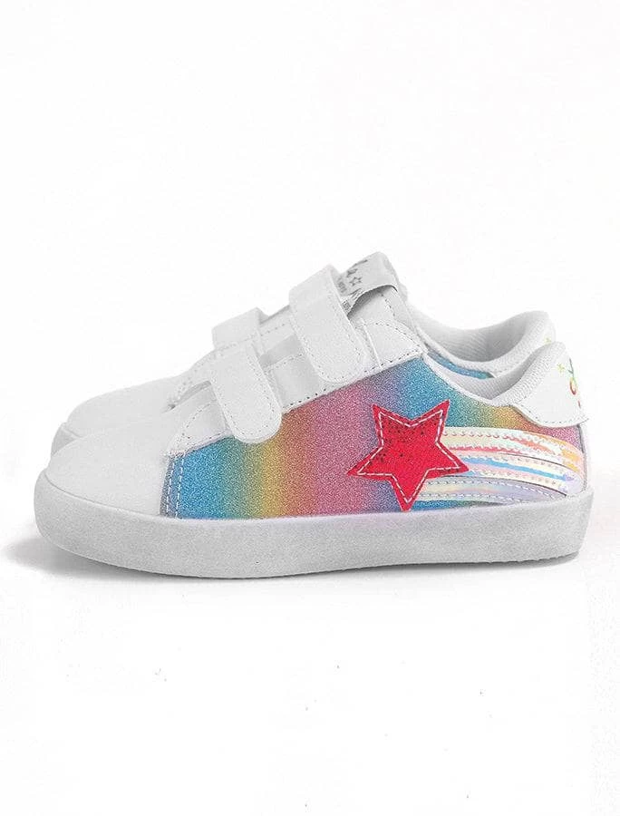 Description: Features a unique ombre pattern with a shooting star motif and Velcro straps for easy fastening, making these sneakers the perfect choice for stylish yet practical everyday wear.