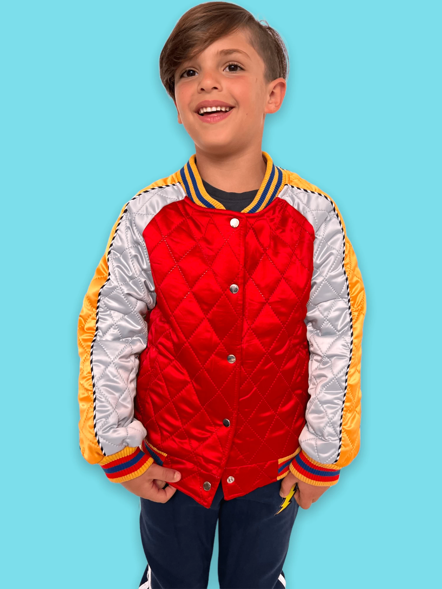 - Warm satin quilted bomber featuring an embroidered tiger on the back