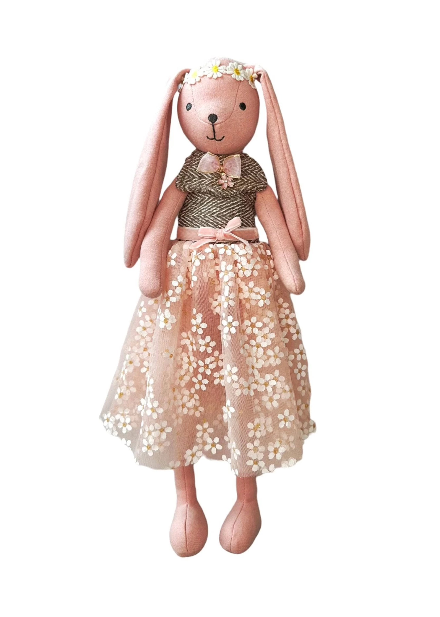 Super soft plush bunny and cuddly toy. The perfect gift for your little ones! Wearing the cutest daisy dressÂ