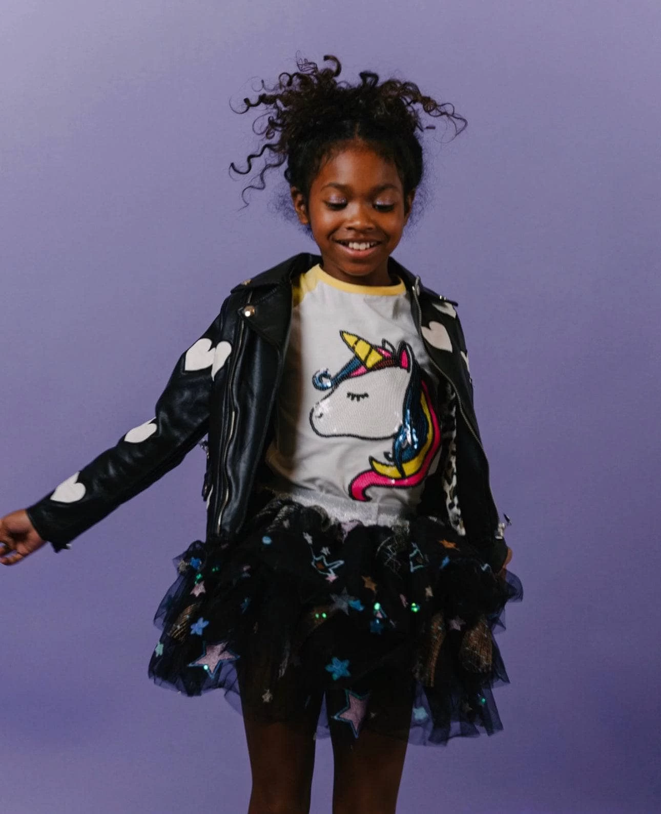 - Sequin unicorn patch on the front