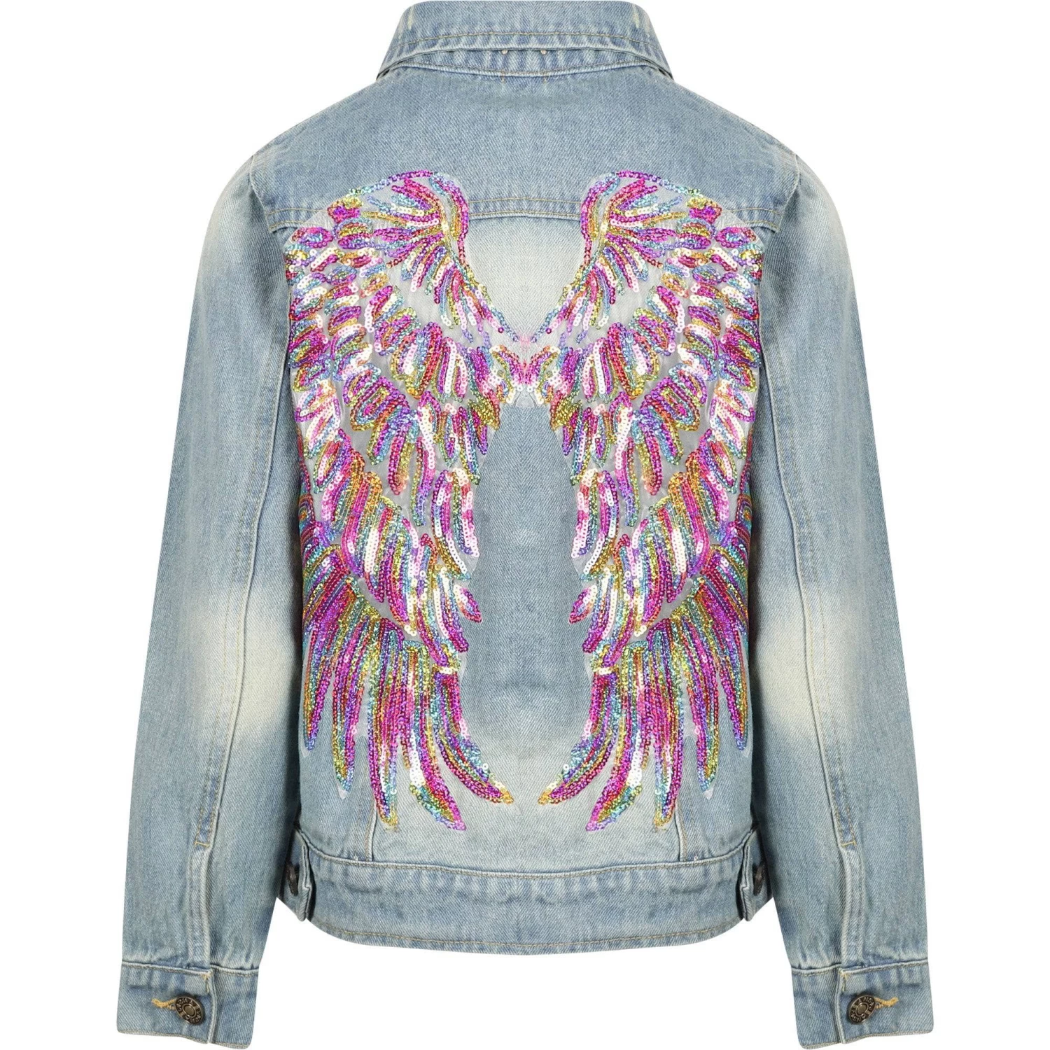 - With colorful sequin angel wings on the back