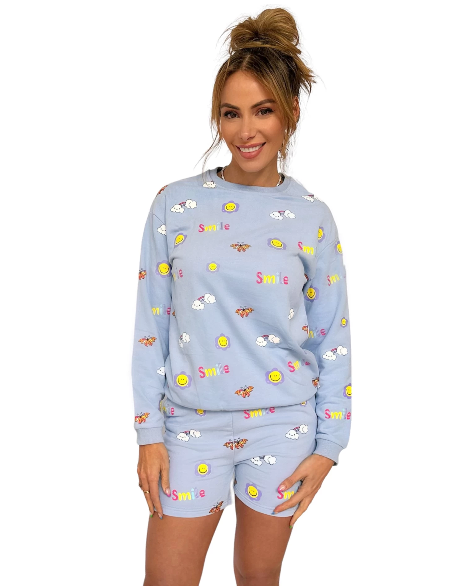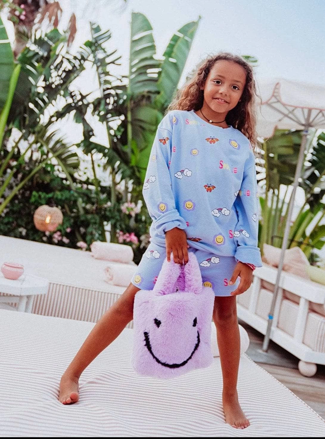 - With print rainbows, flowers, butterflies, and “Smile” writing