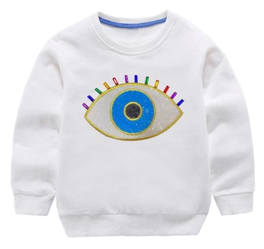 - The rainbow evil eye patch makes the crewneck so adorableÂ